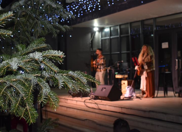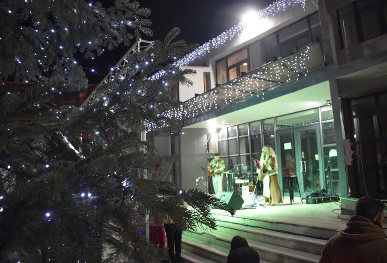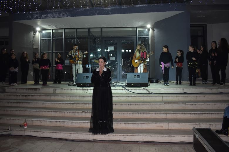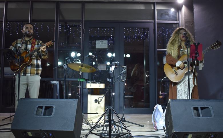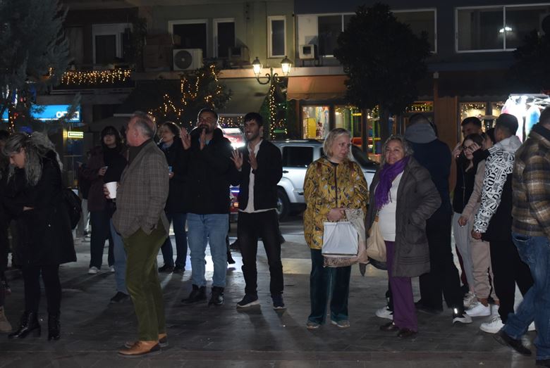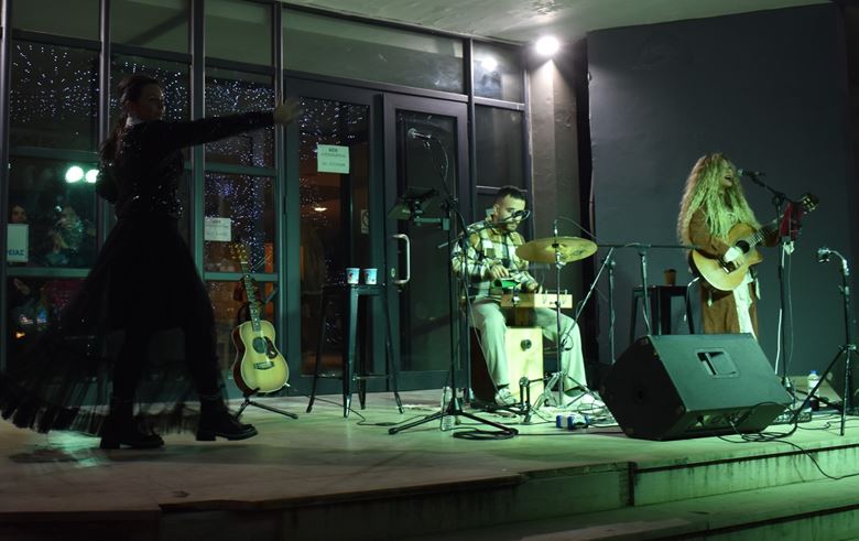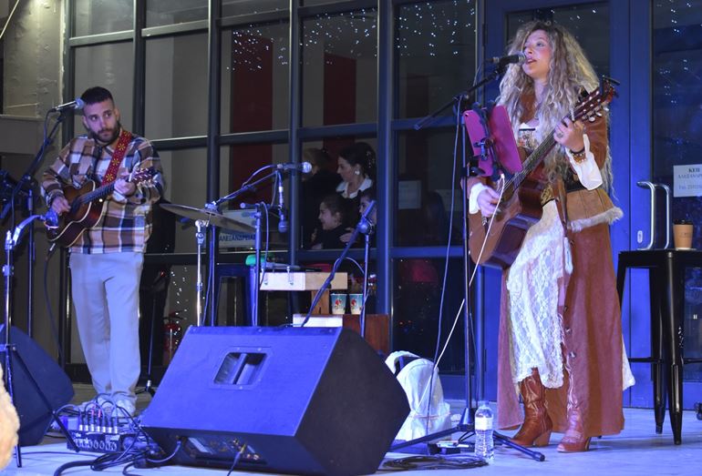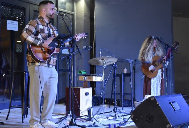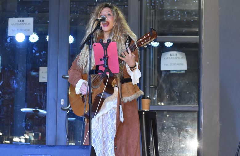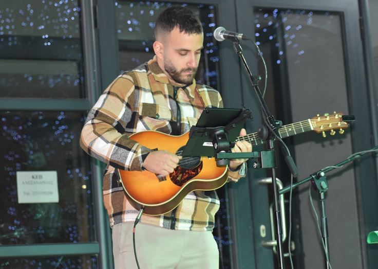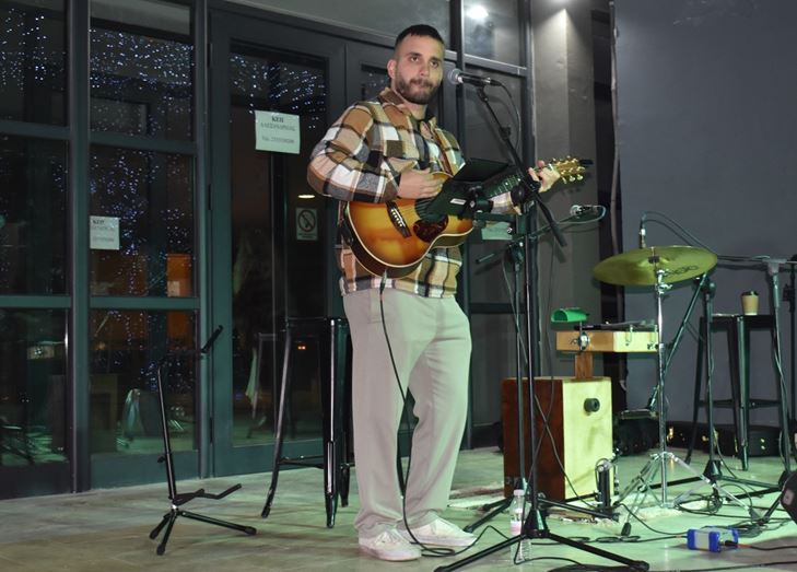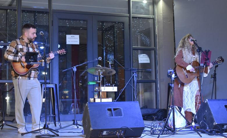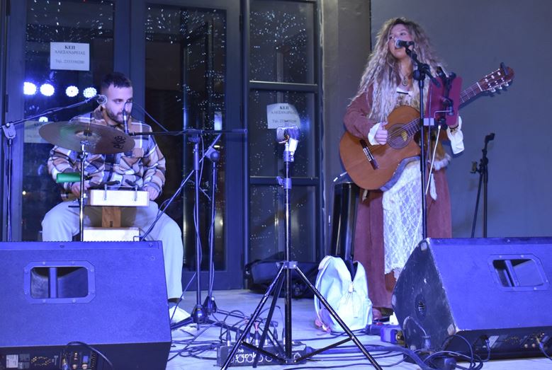 Ο προαύλιος χώρος του Πνευματικού Κέντρου Αλεξάνδρειας μετατράπηκε σε μια μικρή μουσική σκηνή, όπου ο κόσμος που συγκεντρώθηκε απόλαυσε μια μοναδική, ατμοσφαιρική βραδιά κάτω από τον χειμωνιάτικο ουρανό.