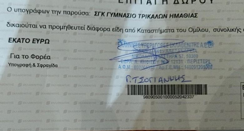 Η εκπαιδευτική κοινότητα του Γυμνασίου Τρικάλων ευχαριστεί θερμά τα Σούπερ Μάρκετ “Σκλαβενίτης” για την προσφορά γλυκών και αλμυρών εδεσμάτων και αναψυκτικών, αξίας 100 ευρώ, για την Χριστουγεννιάτικη γιορτή του σχολείου μας. Είναι πολύ σημαντικές αυτού του είδους οι προσφορές που αναδεικνύουν την κοινωνική ευαισθησία και την έννοια της δωρεάς, ενώ παράλληλα δημιουργούν συνθήκες αισιοδοξίας και χαράς στους μαθητές μας.