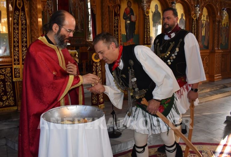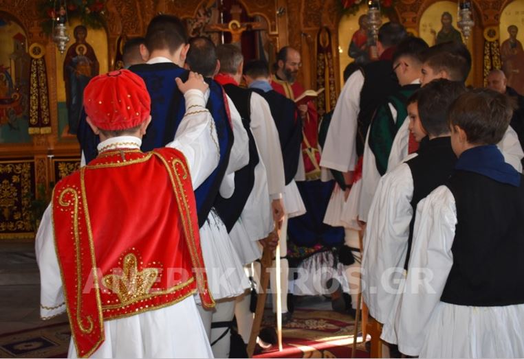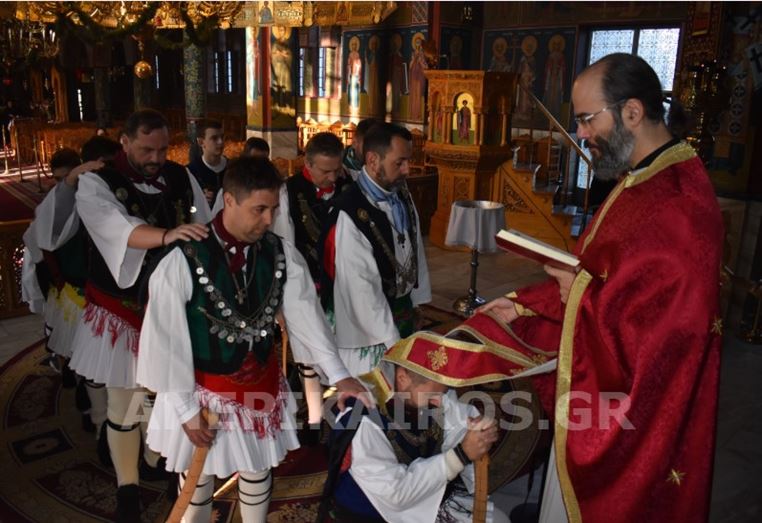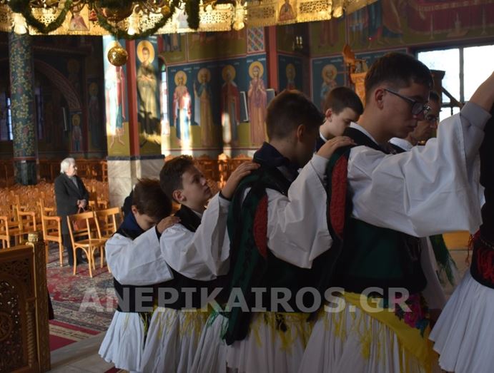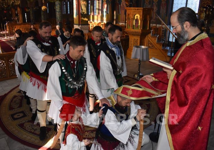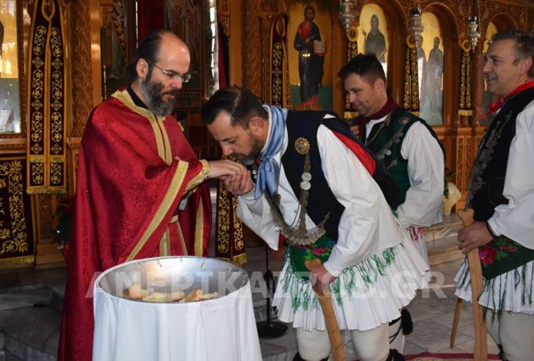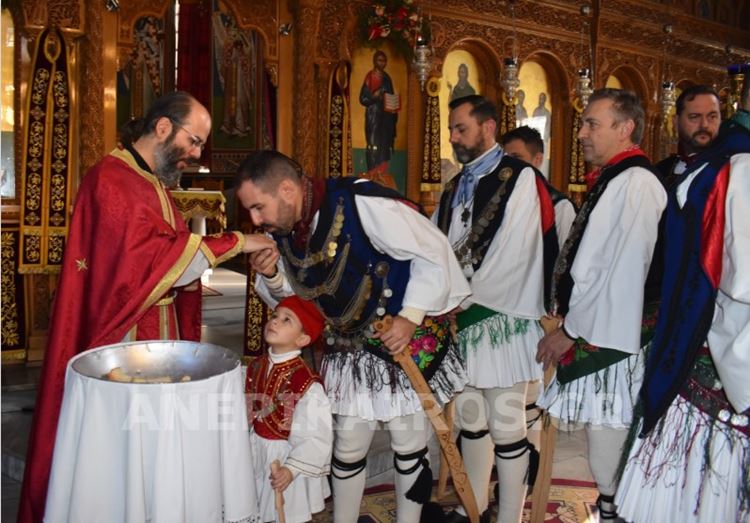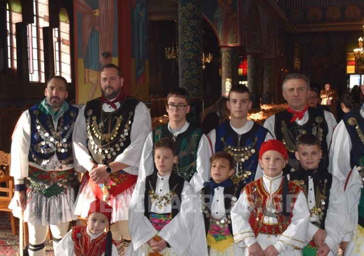 Με σεβασμό και κατάνυξη, οι Ρουγκατσάρηδες πέρασαν το κατώφλι του Ιερού Ναού Κοιμήσεως της Θεοτόκου, όπου ο πάτερ Βασίλειος τους υποδέχτηκε εγκάρδια. Η ευλογία του δεν ήταν μια τυπική πράξη· ήταν η επίσημη έναρξη του εθίμου, η πνευματική σφραγίδα που συνδέει το παλιό με το νέο, το λαϊκό με το ιερό, την παράδοση με τη σύγχρονη ζωή της πόλης.