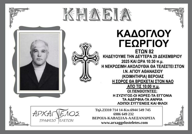 Η κηδεία του Καδόγλου Γεωργίου την Δευτέρα 29 Δεκεμβρίου 2025