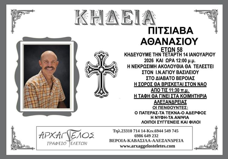 Η κηδεία του Πιτσιάβα Αθανασίου την Τετάρτη 14 Ιανουαρίου 2026