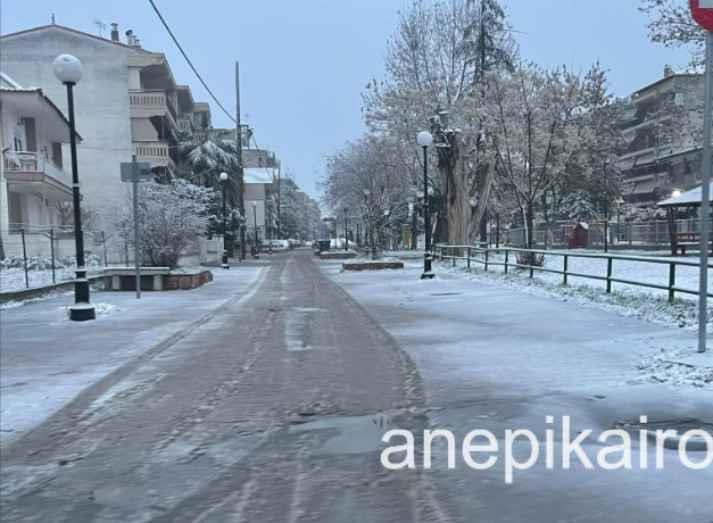 Από τις πρώτες πρωινές ώρες, όσοι βγήκαν για δουλειά, σχολείο ή τις καθημερινές τους υποχρεώσεις, βρέθηκαν μπροστά σε μια εικόνα που θύμιζε περισσότερο ορεινή περιοχή παρά την καρδιά της Ημαθίας.