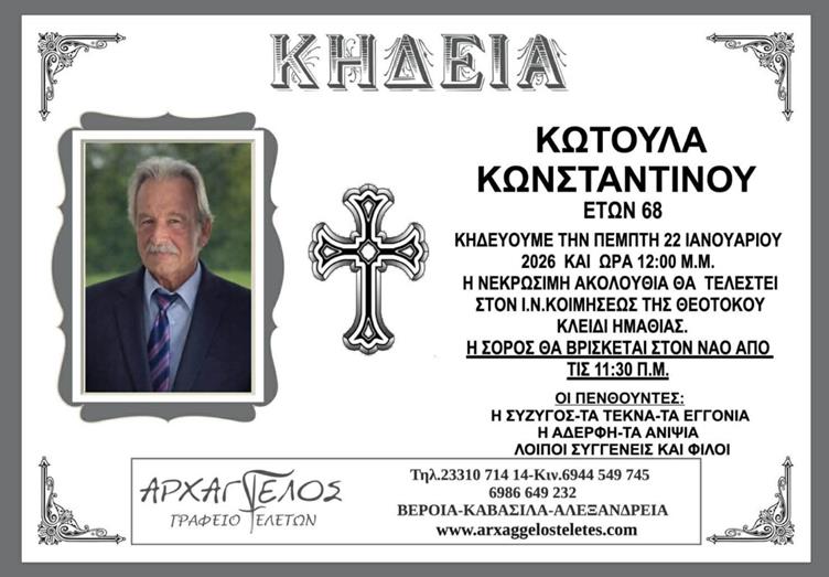 Η κηδεία του Κωτούλα Κωνσταντίνου στο Κλειδί Ημαθίας την Πέμπτη 22 Ιανουαρίου 2026