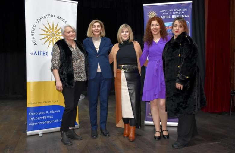 Χαιρετισμό και παρουσίαση του έργου του Αθλητικού Σωματείου απηύθυνε η Έφη Καραγιάννη, Πρόεδρος του Α.Σ. ΑμεΑ Ν. Ημαθίας «ΑΙΓΕΣ ΒΕΡΓΙΝΑ», αναδεικνύοντας τις δράσεις, τους αγώνες και τις εκπαιδευτικές επισκέψεις του Σωματείου σε σχολεία, με σταθερό στόχο έναν αθλητισμό και μια κοινωνία χωρίς αποκλεισμούς.