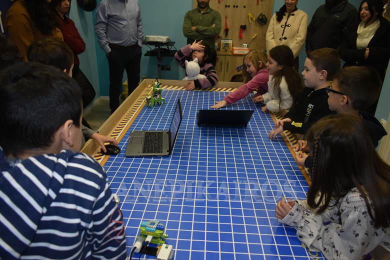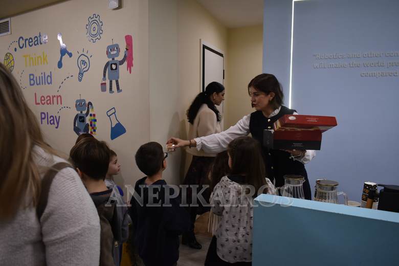 Ακολούθησε μια σύντομη αλλά εντυπωσιακή πρακτική επίδειξη: τα παιδιά, μαζί με τους εκπαιδευτικούς τους, παρουσίασαν μικρά δείγματα όσων μαθαίνουν μέσα στη χρονιά — από βασικές αρχές ρομποτικής μέχρι απλές αυτοματοποιημένες κατασκευές.