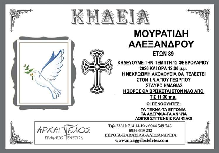 Η κηδεία του Μουρατίδη Αλέξανδρου στον Σταυρό Ημαθίας την Πέμπτη 12 Φεβρουαρίου 2026