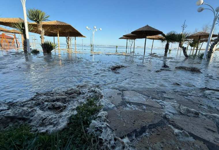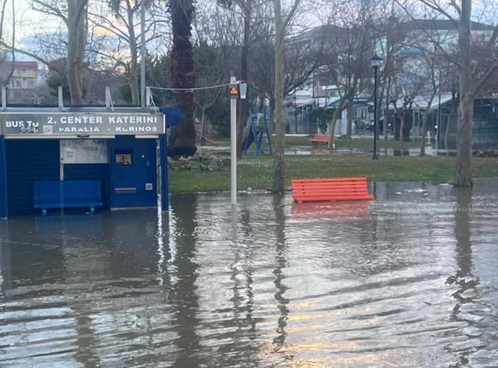 Τα κύματα που έφτασαν στις ακτές της Κατερίνης μετέφεραν μεγάλες μάζες νερού, προκαλώντας προσωρινή συσσώρευση και επιδεινώνοντας την κατάσταση.