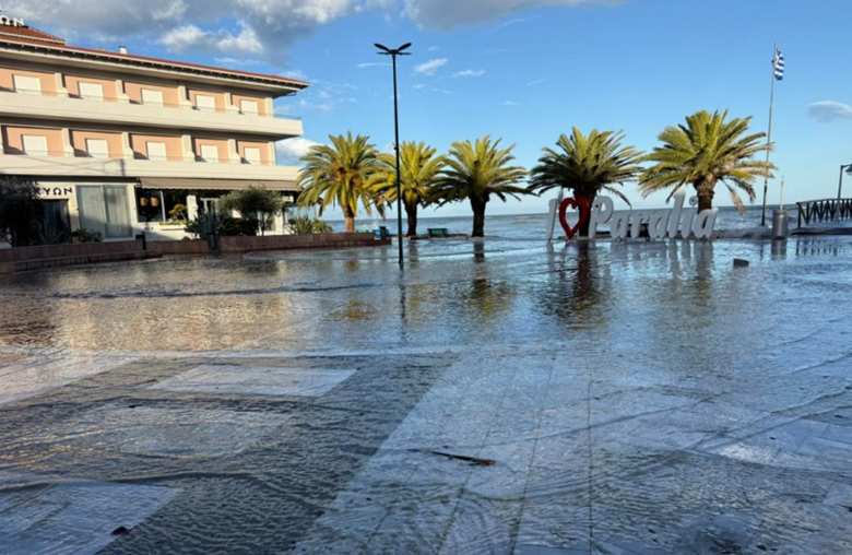 Η θαλάσσια υπερχείλιση, σε συνδυασμό με τους ισχυρούς νότιους ανέμους, οδήγησε σε εκτεταμένη κατάκλυση του παραλιακού μετώπου, επηρεάζοντας την Κοινότητα Παραλίας, τον Οικισμό Ολυμπιακής Ακτής και την Κοινότητα Κορινού.