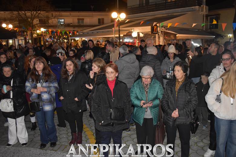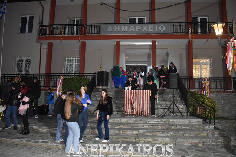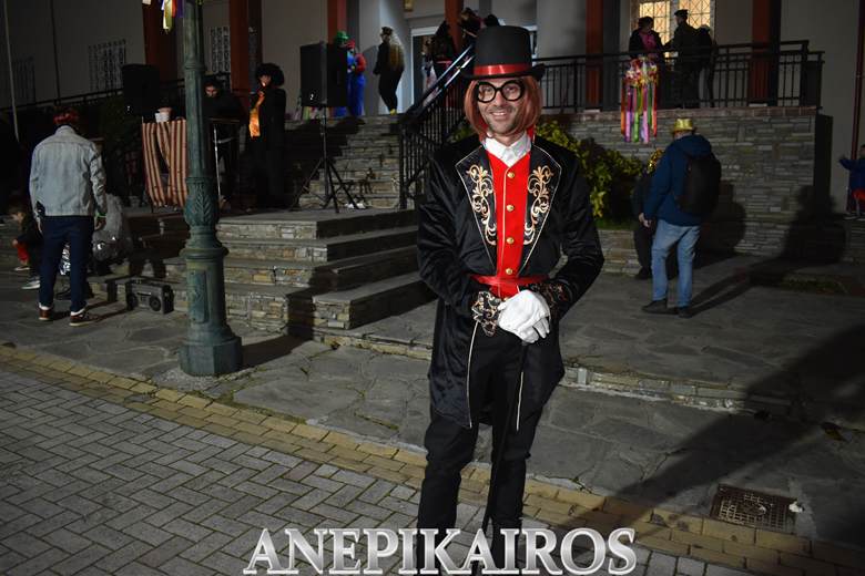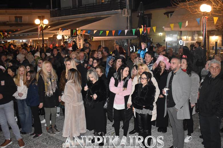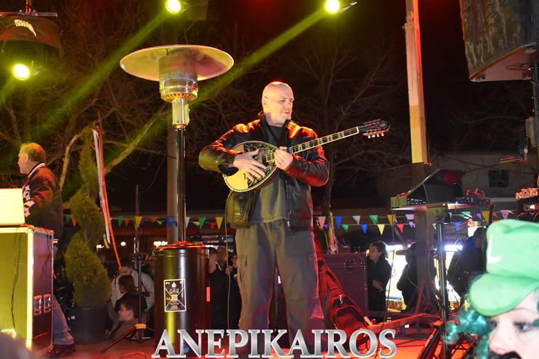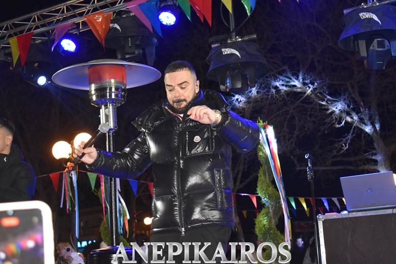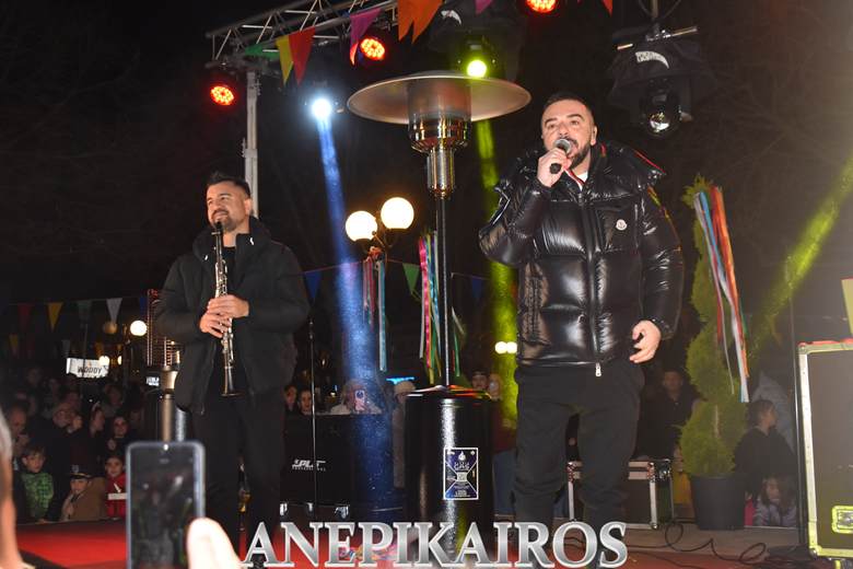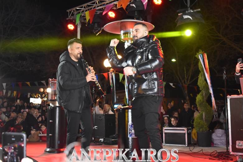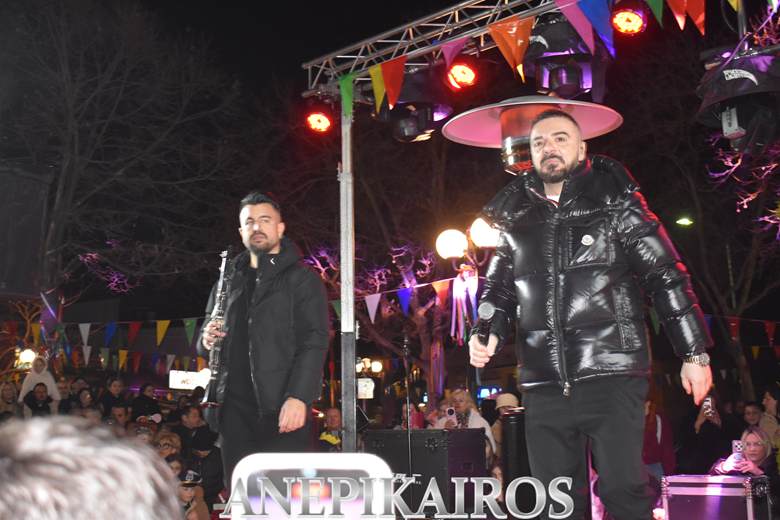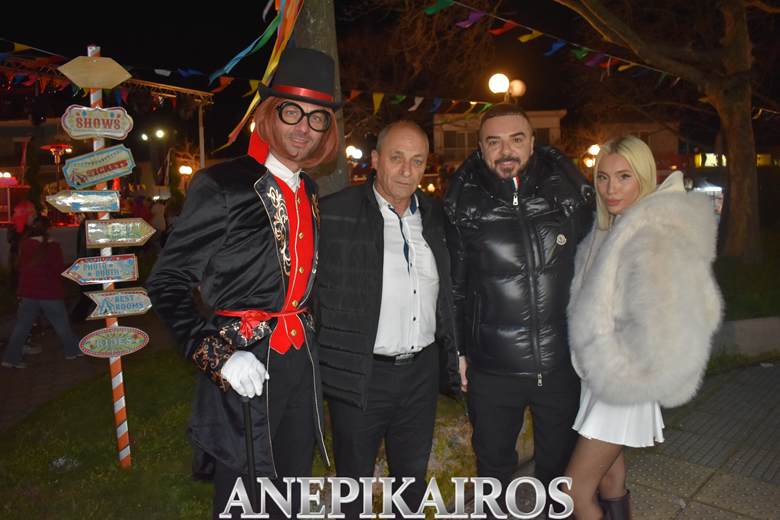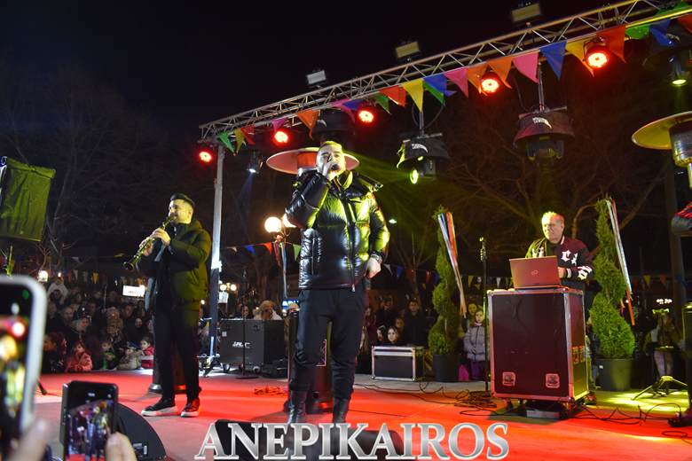 Η γιορτή ξεκίνησε λίγο πριν την εμφάνιση του γνωστού τραγουδιστή, όταν μπροστά στο Δημαρχείο στήθηκε μια μικρή αλλά εντυπωσιακή αποκριάτικη παρέλαση, με καρναβαλιστές, μουσική και κεράσματα που έδωσαν τον τόνο της βραδιάς.
