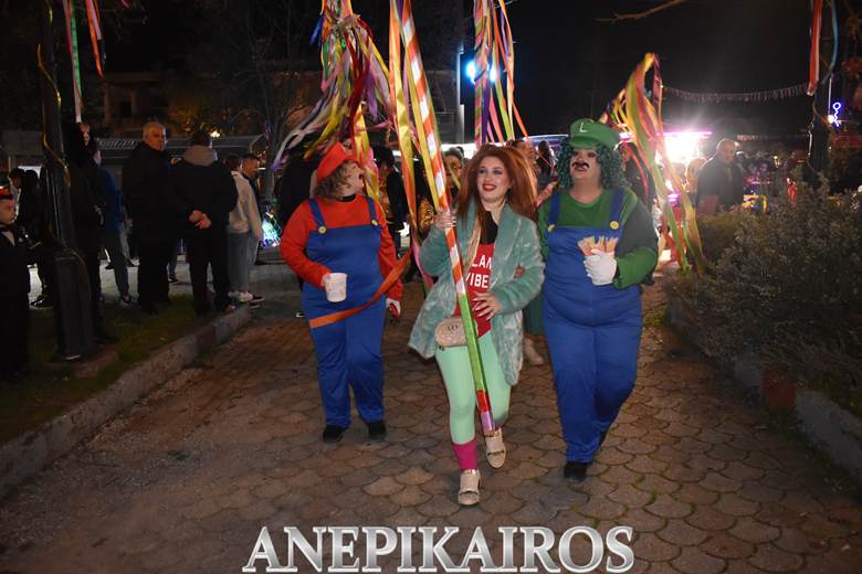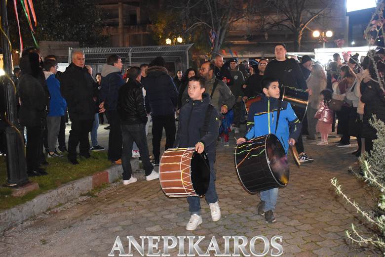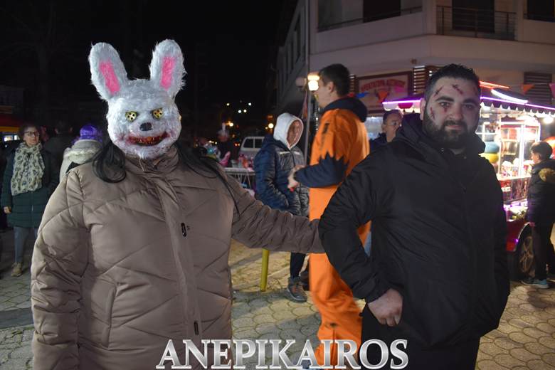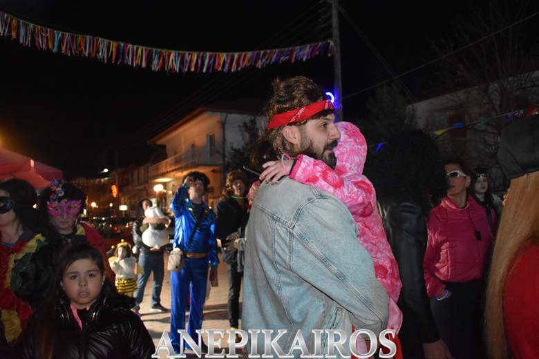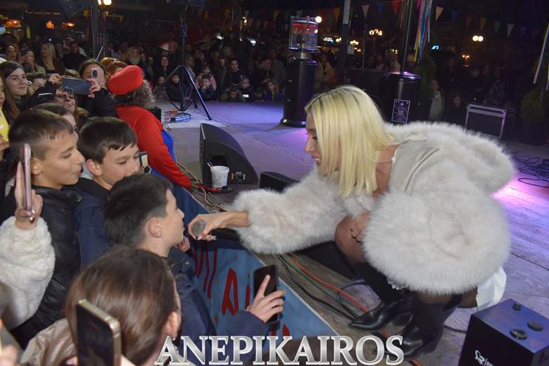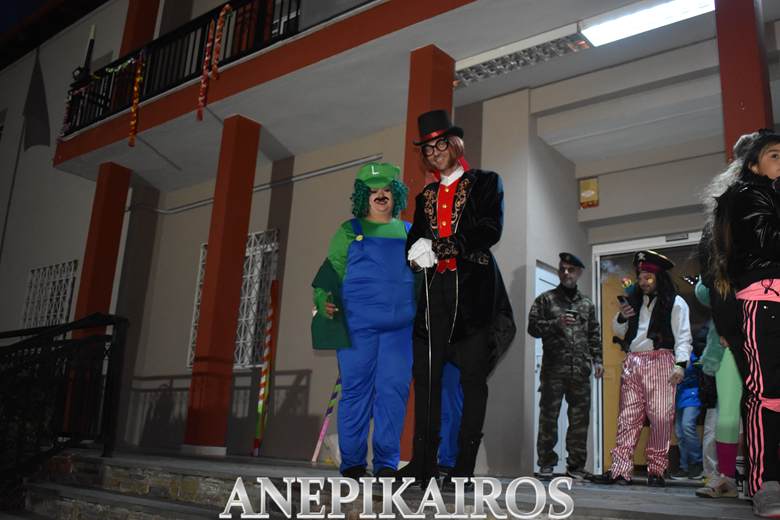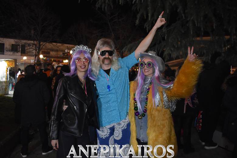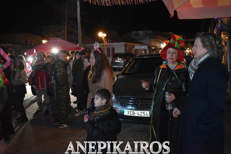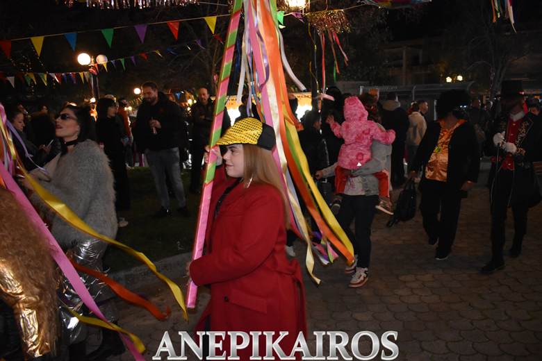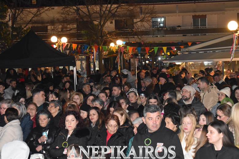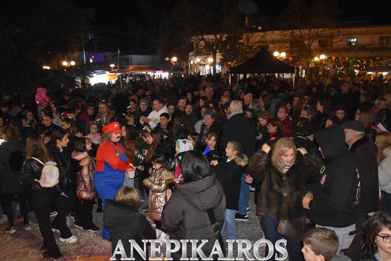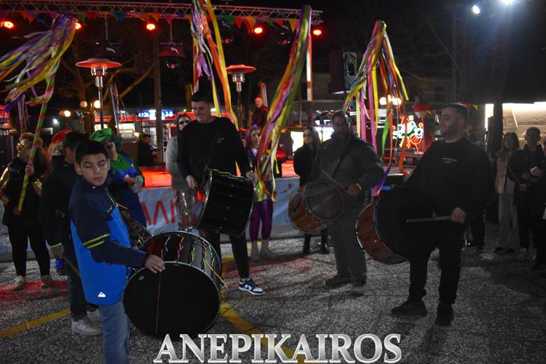 Η γιορτή ξεκίνησε λίγο πριν την εμφάνιση του γνωστού τραγουδιστή, όταν μπροστά στο Δημαρχείο στήθηκε μια μικρή αλλά εντυπωσιακή αποκριάτικη παρέλαση, με καρναβαλιστές, μουσική και κεράσματα που έδωσαν τον τόνο της βραδιάς.