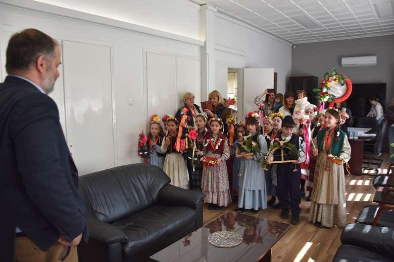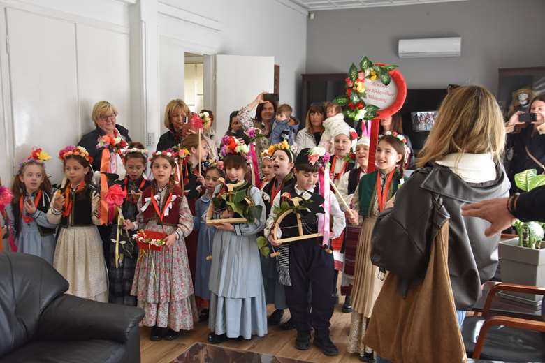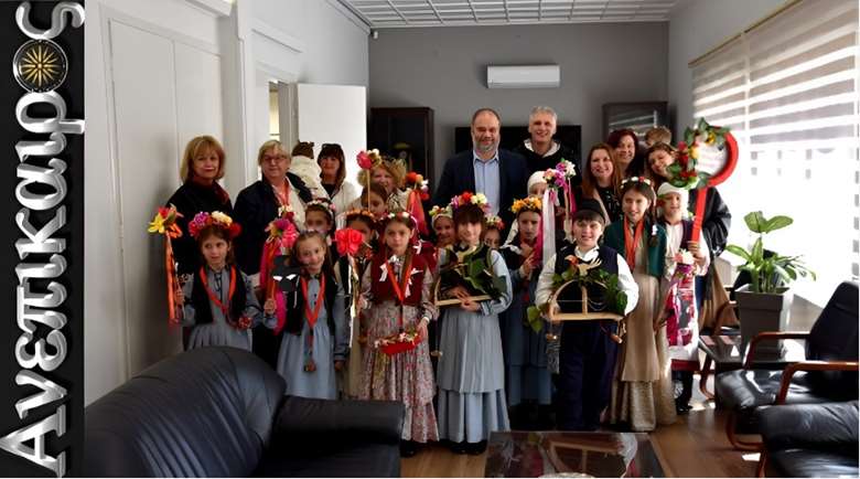 Στο πλαίσιο των δράσεών τους, τα παιδιά περιηγήθηκαν στους δρόμους της πόλης τραγουδώντας τα παραδοσιακά κάλαντα της άνοιξης και στη συνέχεια επισκέφθηκαν το Δημαρχείο Νάουσας, όπου τους υποδέχθηκε ο Δήμαρχος Ηρωικής Πόλεως Νάουσας κ. Νικόλαος Κουτσογιάννης.
