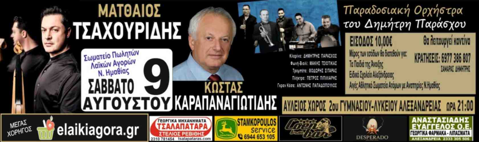Σημειώστε την ημερομηνία! Στις 9 Αυγούστου, ο προαύλιος χώρος του 2ου Γυμνασίου Αλεξάνδρειας θα μετατραπεί σε μια μεγάλη μουσική σκηνή, φιλοξενώντας μια ξεχωριστή συναυλία με τους Ματθαίο Τσαχουρίδη και Κώστα Καραπαναγιωτίδη και την συμμετοχή της ορχήστρας του Δημήτρη Παράσχου.