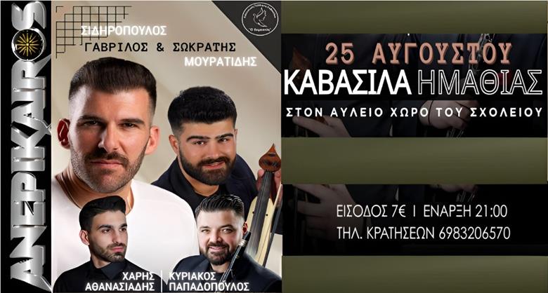 Ο πολιτιστικός σύλλογος Καβασίλων 'Ο Χαμαετός' ετοιμάζει ένα αξέχαστο ποντιακό γλέντι στα Καβάσιλα Ημαθίας με τον καταπληκτικό Sidiropoulos Gabrilos , όπου μας υπόσχεται μια φανταστική μουσική βραδιά.