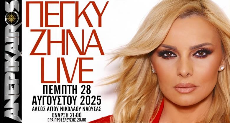 Η εκρηκτική Πέγκυ Ζήνα έρχεται στον καταπράσινο και ειδυλλιακό άλσος του Αγίου Νικολάου Νάουσας, την Πέμπτη 28 Αυγούστου, για μια συναυλία που θα μείνει αξέχαστη!