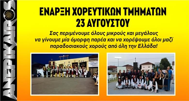 ΕΝΑΡΞΗ ΧΟΡΕΥΤΙΚΩΝ ΤΜΗΜΑΤΩΝ 23 ΑΥΓΟΥΣΤΟΥ