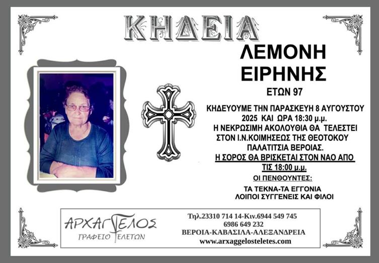 Η κηδεία της Λεμονή Ειρήνης την Παρασκευή 8 Αυγούστου 2025.