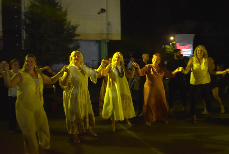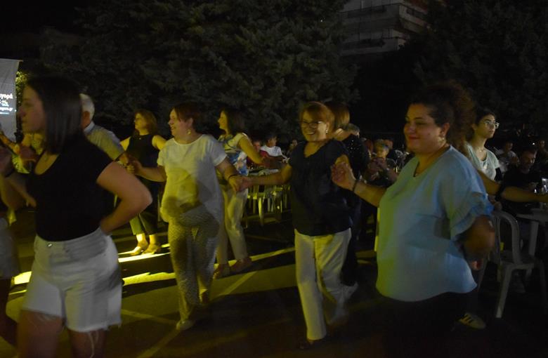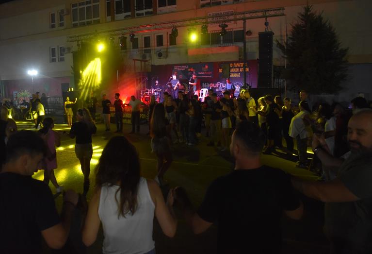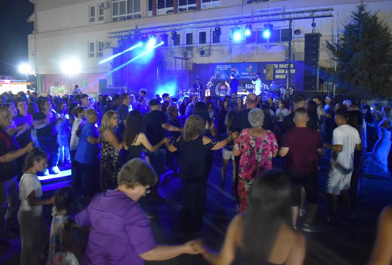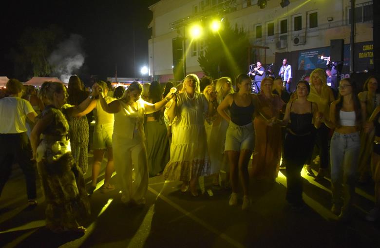 Ακολούθησε η μπάντα του Δημήτρη Παράσχου, η οποία κατάφερε να κρατήσει την ατμόσφαιρα στα ύψη, με το τραγούδι και τον χορό να σκορπούν κέφι και χαρά.