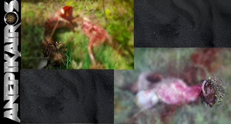 Οι εικόνες από το σημείο, αν και θολωμένες για ευνόητους λόγους, αποτυπώνουν το μέγεθος της καταστροφής και τον τρόμο που προκάλεσε το περιστατικό στους κτηνοτρόφους.
