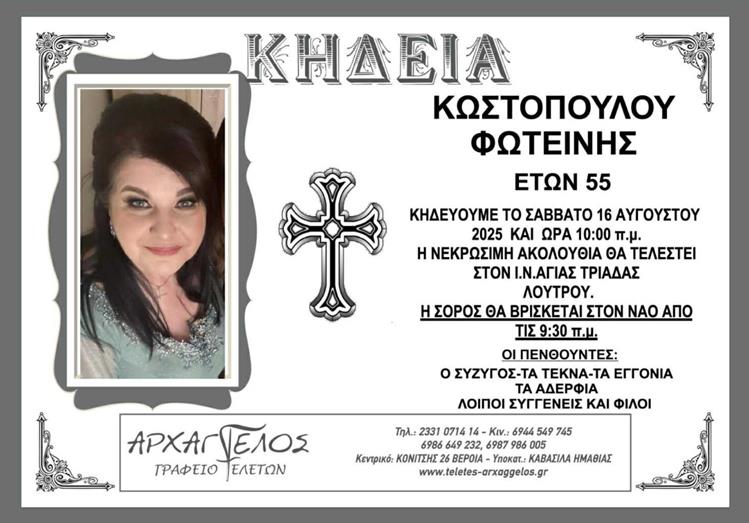 Η κηδεία της Κωστοπούλου Φωτεινής στο Λουτρό Ημαθίας το Σάββατο 16 Αυγούστου 2025.