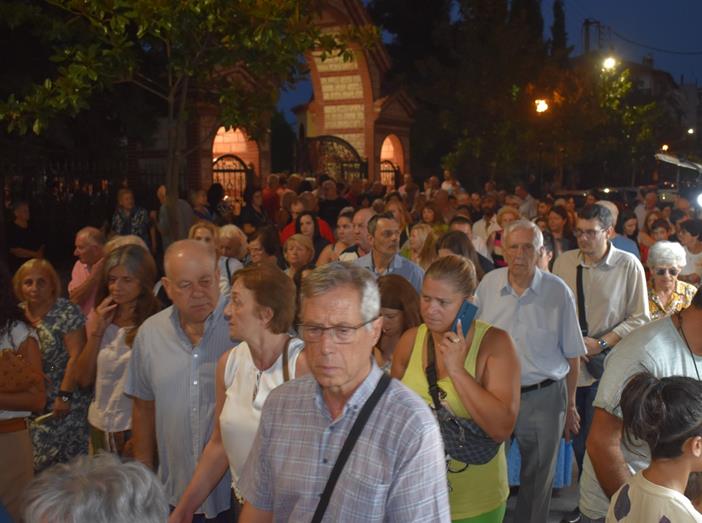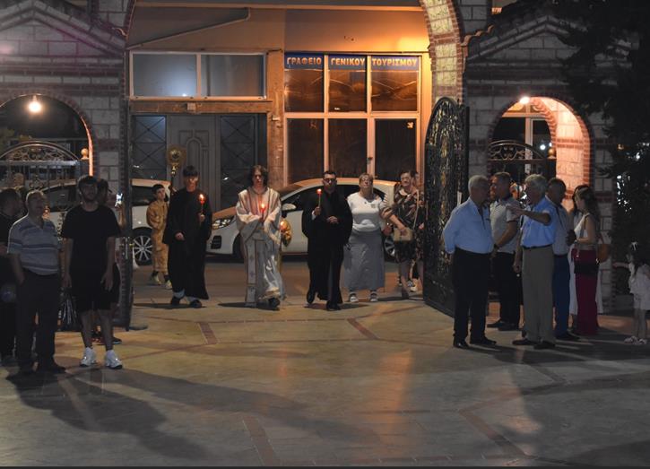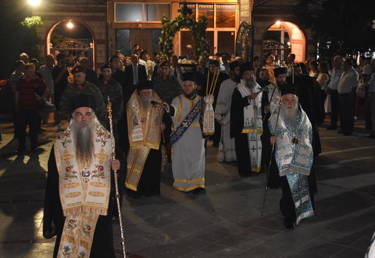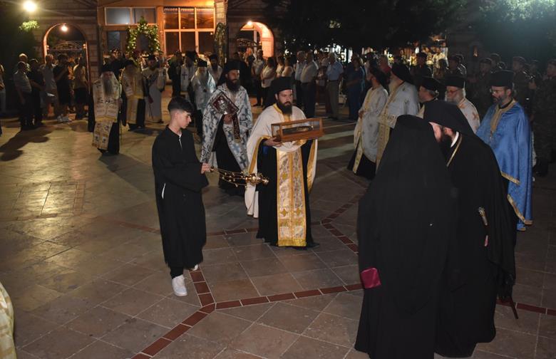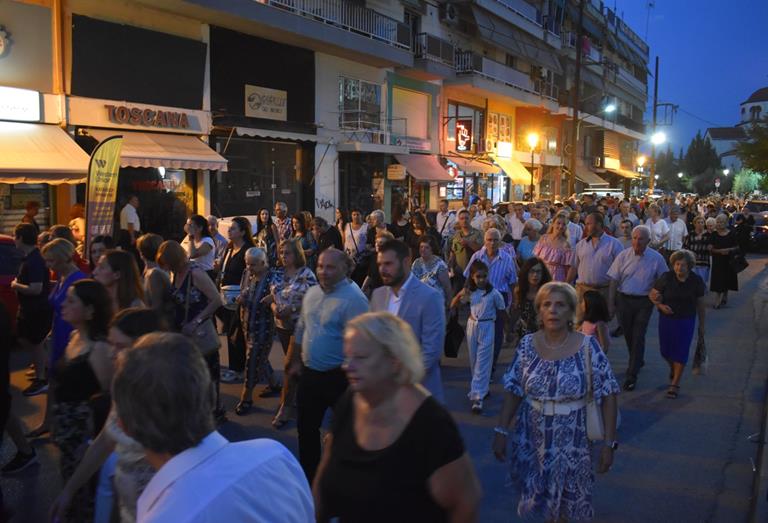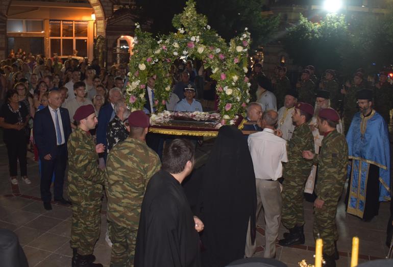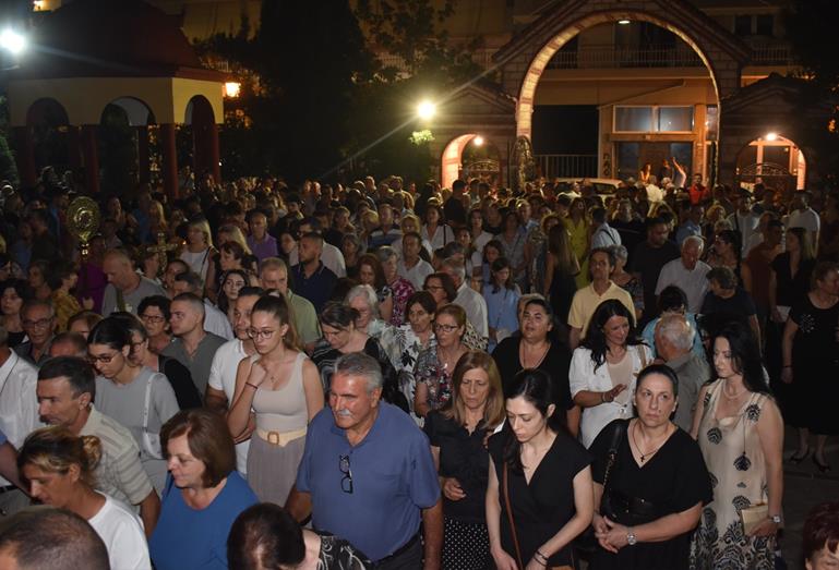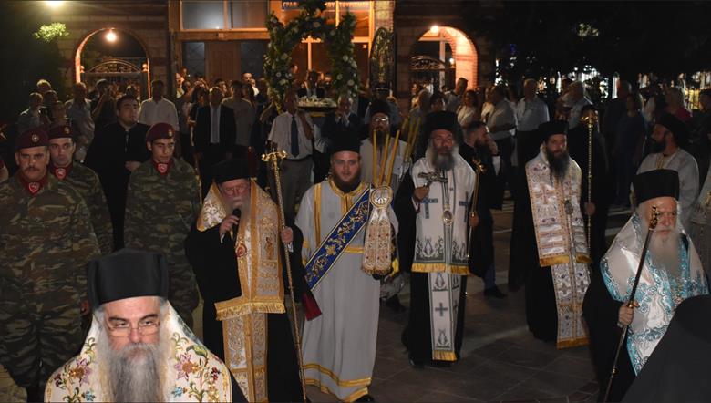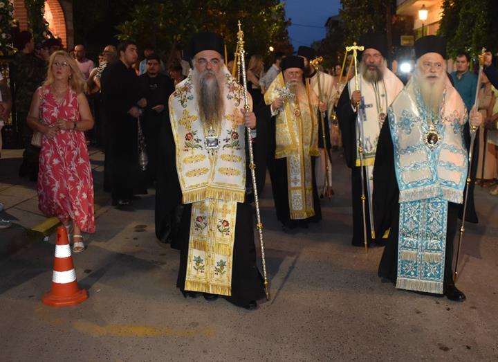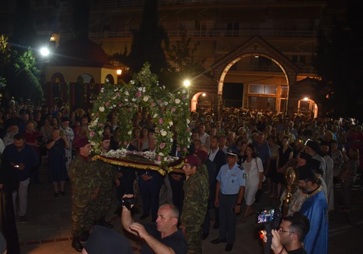 Ακολούθησε Ιερά Λιτανεία του Επιταφίου της Παναγίας στους δρόμους της πόλεως, με τη συμμετοχή τοπικών πολιτικών και στρατιωτικών αρχών και πλήθους ευσεβών πιστών, ενώ της εκκλησιαστικής τάξεως επιμελήθηκε εντός του Ιερού Ναού ο Αρχιερατικός Επίτροπος Αλεξανδρείας και προϊστάμενος του πανηγυρίζοντος Ιερού Ναού Αρχιμ. Διονύσιος Ανθόπουλος και κατά την ιερά Λιτανεία ο Αρχιμ. Παντελεήμων Παπαεμμανουήλ.