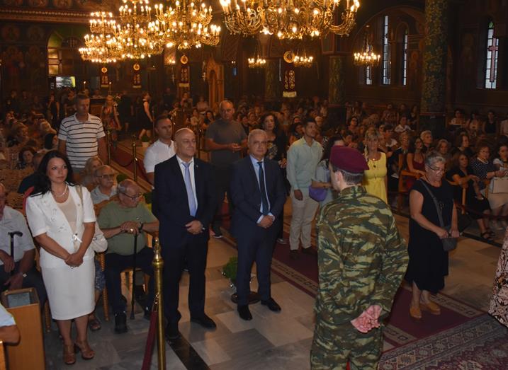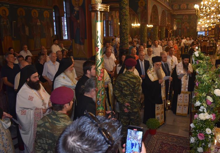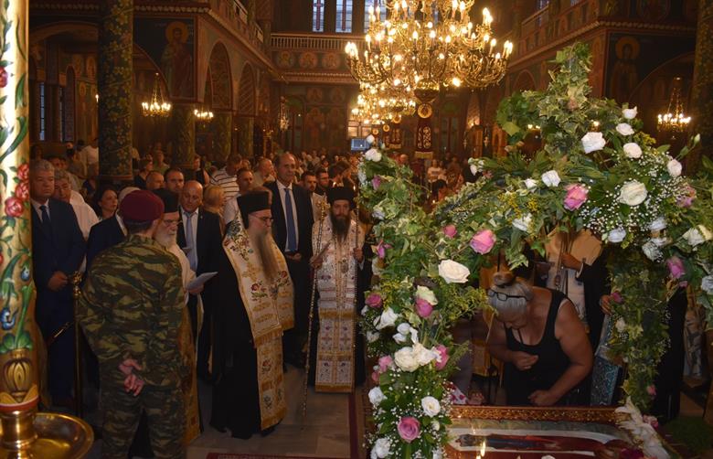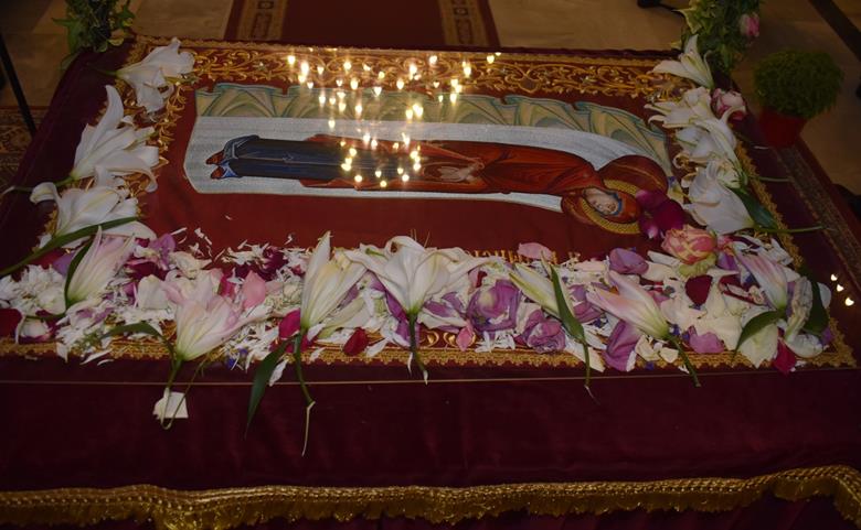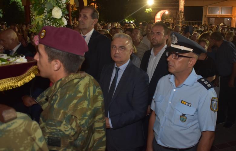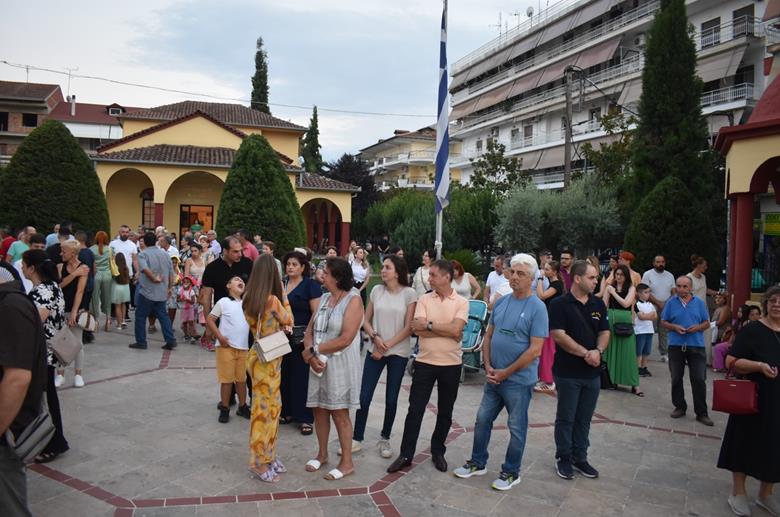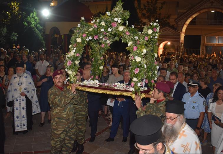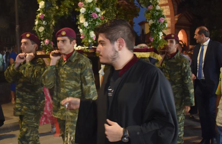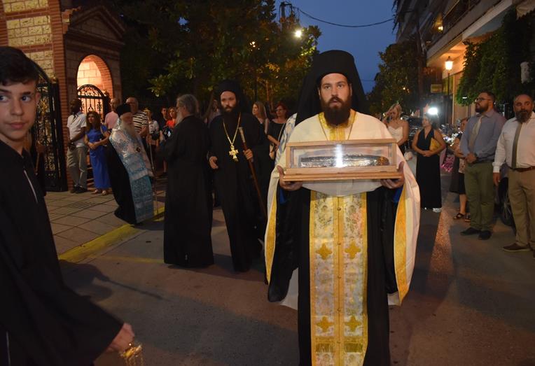 Ακολούθησε Ιερά Λιτανεία του Επιταφίου της Παναγίας στους δρόμους της πόλεως, με τη συμμετοχή τοπικών πολιτικών και στρατιωτικών αρχών και πλήθους ευσεβών πιστών, ενώ της εκκλησιαστικής τάξεως επιμελήθηκε εντός του Ιερού Ναού ο Αρχιερατικός Επίτροπος Αλεξανδρείας και προϊστάμενος του πανηγυρίζοντος Ιερού Ναού Αρχιμ. Διονύσιος Ανθόπουλος και κατά την ιερά Λιτανεία ο Αρχιμ. Παντελεήμων Παπαεμμανουήλ.
