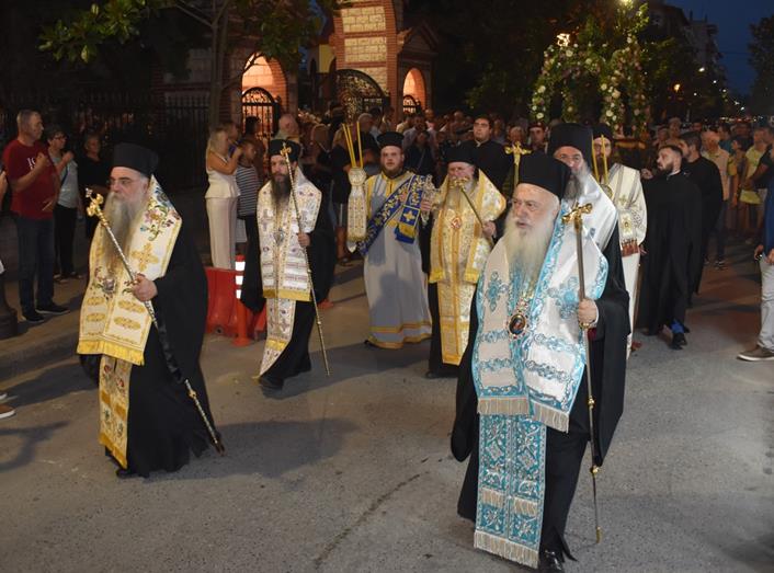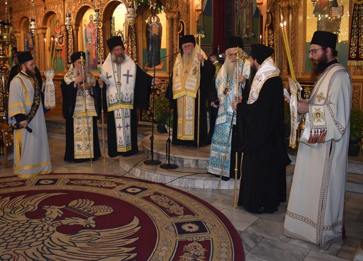 Στον Πολυαρχιερατικό Εσπερινό χοροστάτησε ο Σεβασμιώτατος Μητροπολίτης Σισανίου και Σιατίστης κ. Αθανάσιος και συμμετείχαν οι Σεβασμιώτατοι Μητροπολίτες Φιλίππων, Νεαπόλεως και Θάσου κ. Στέφανος, Ρεθύμνης και Αυλοποτάμου κ. Πρόδρομος, ο οποίος κήρυξε τον θείο λόγο, ο Θεοφιλέστατος Επίσκοπος Αλμωπίας κ. Στέφανος και ο Ποιμενάρχης μας, Σεβασμιώτατος Μητροπολίτης Βεροίας, Ναούσης και Καμπανίας κ. Παντελεήμων.