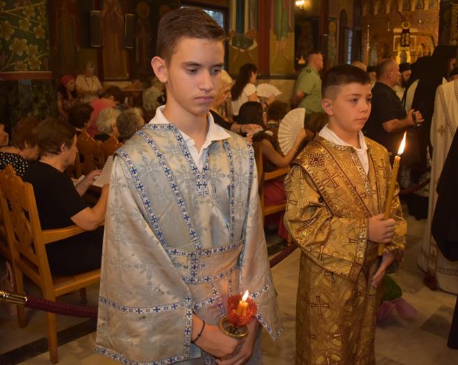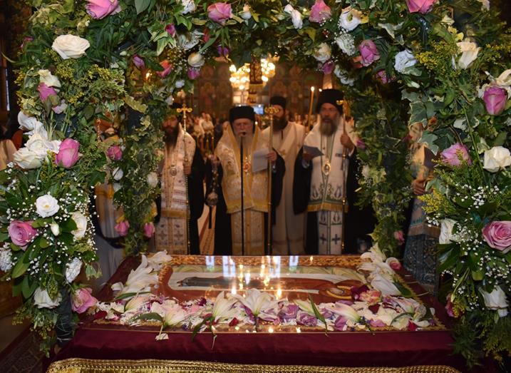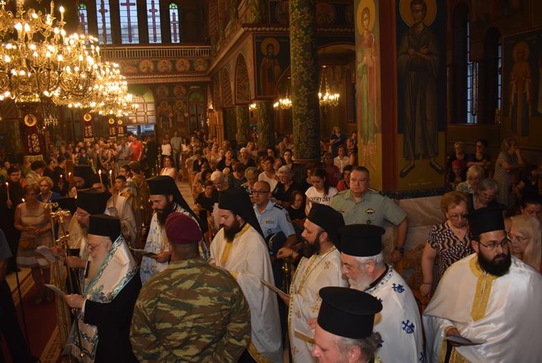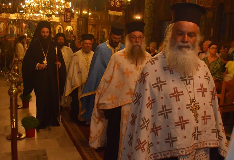 Το εσπέρας της Παρασκευής, 15ης Αυγούστου, στον πανηγυρίζοντα Ιερό Μητροπολιτικό Ναό Κοιμήσεως της Θεοτόκου Αλεξανδρείας, όπως κάθε χρόνο, τελέστηκε Μεθεόρτιος Πανηγυρικός Εσπερινός και στη συνέχεια εψάλησαν τα εγκώμια προς την Υπεραγία Θεοτόκο.