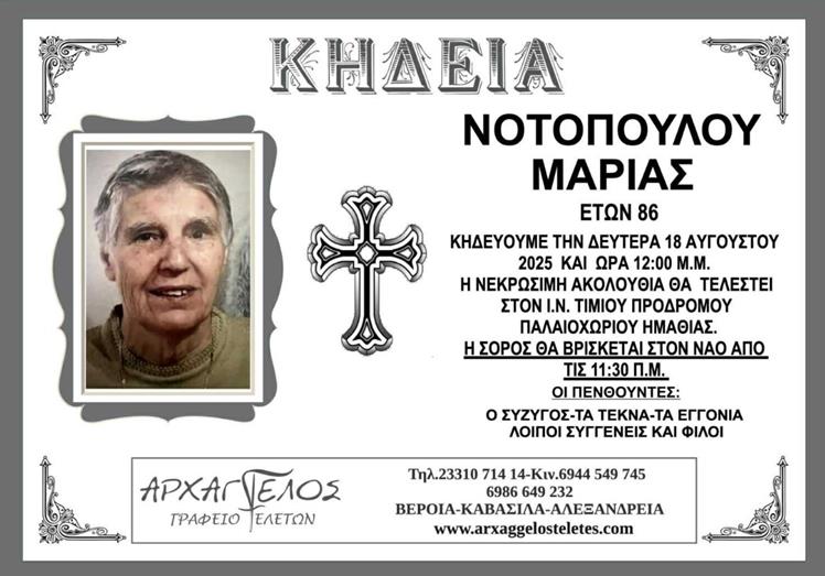 Η κηδεία της Νοτοπούλου Μαρίας στο Παλαιοχώρι Ημαθίας την Δευτέρα 18 Αυγούστου 2025.