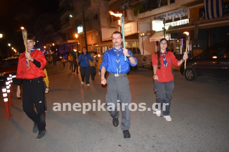 Με αφορμή την εθνική επέτειο της 28ης Οκτωβρίου, το Σύστημα Προσκόπων Αλεξάνδρειας διοργάνωσε το απόγευμα της Τρίτης μια ξεχωριστή λαμπαδηδρομία στους κεντρικούς δρόμους της πόλης, τιμώντας τους ήρωες και πεσόντες του Έπους του ’40.