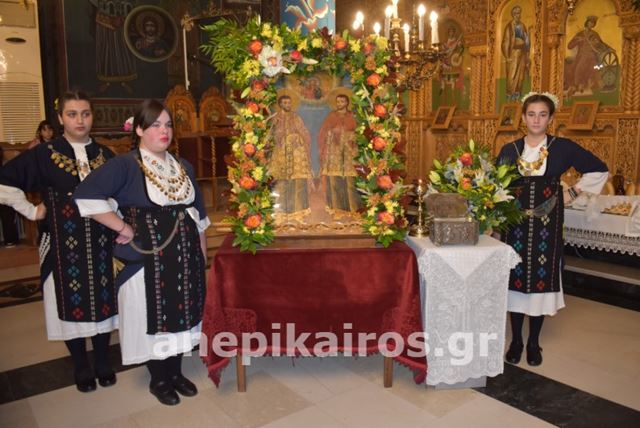 Η ακολουθία τελέστηκε με κάθε εκκλησιαστική μεγαλοπρέπεια και περιλάμβανε αρτοκλασία και θείο κήρυγμα, που συγκίνησε τους παρευρισκόμενους. Πιστοί κάθε ηλικίας κατέκλυσαν τον ναό και τον προαύλιο χώρο, αποδεικνύοντας την αφοσίωσή τους στους προστάτες Αγίους της περιοχής.