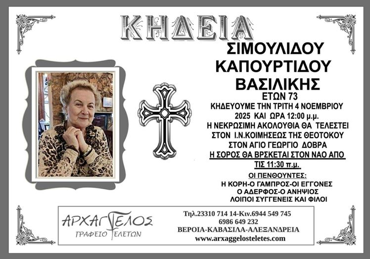 Η κηδεία της Σιμουλίδου Καπουρτίδου Βασιλικής την Τρίτη 4/11/2025