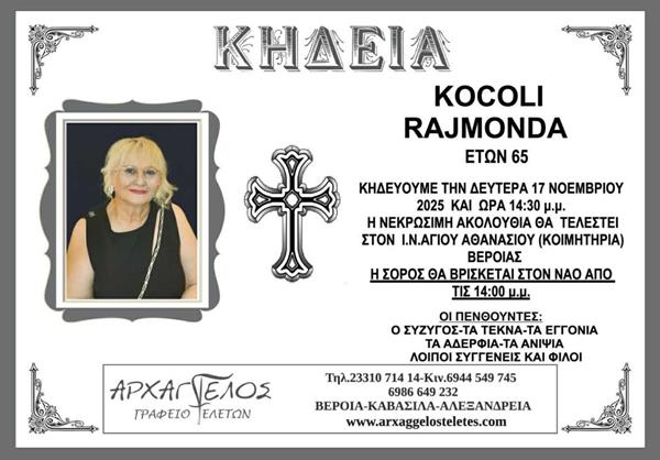 Η κηδεία της Κocoli Rajmonda την Δευτέρα 17 Νοεμβρίου 2025