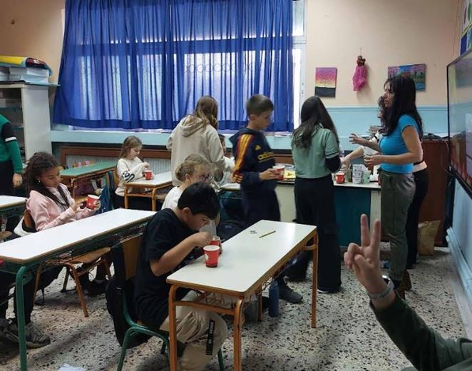 Οι μαθητές/τριες με την καθοδήγηση των Δασκάλων τους έφτιαξαν τυροπιτάκια, βάφλες φρουτοσαλάτα, παν κέικ, γιαούρτι με μέλι και άλλα υγιεινά εδέσματα.