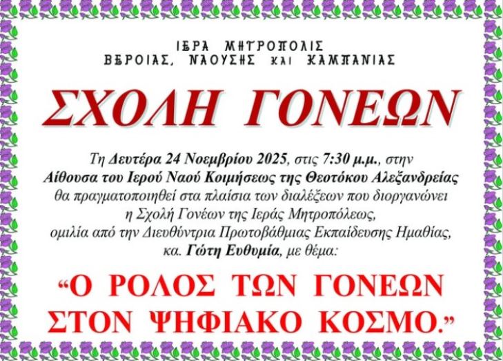 Ο ρόλος των γονέων στο ψηφιακό κόσμο από την Σχολή Γονέων της Ιεράς Μητροπόλεως στον ΙΝ Κοιμησεως της Θεοτόκου στην Αλεξάνδρεια