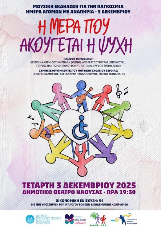 Μουσική εκδήλωση για την Παγκόσμια Ημέρα Ατόμων με Αναπηρία στο δημοτικό θέατρο Νάουσας.