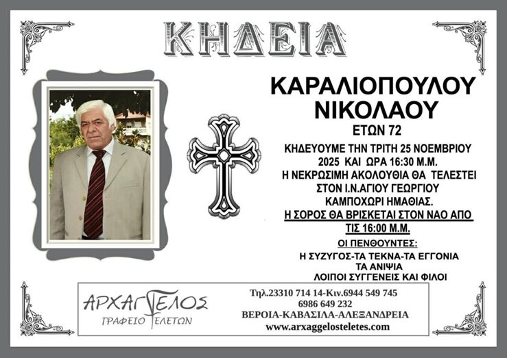 Η κηδεία του Καραλιόπουλου Νικόλαου στο Καμποχώρι Ημαθίας την Τρίτη 25 Νοεμβρίου 2025
