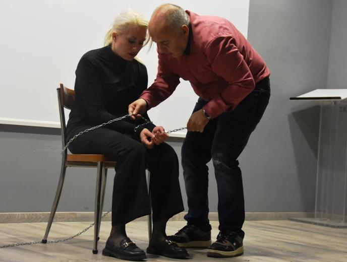 Οι καλλιτέχνες κα Ηλιάνα Τσίλη και κ. Δημήτρης Πάζος παρουσίασαν ένα συγκλονιστικό θεατρικό δρώμενο βασισμένο σε πραγματικές μαρτυρίες ανθρώπων που έχουν βιώσει κακοποίηση. Μέσα από έντονα συναισθηματικές σκηνές αναδείχθηκαν οι σιωπηλές διαδρομές της βίας, ο φόβος, η απομόνωση και ο ψυχολογικός εγκλωβισμός που βιώνουν τα θύματα.