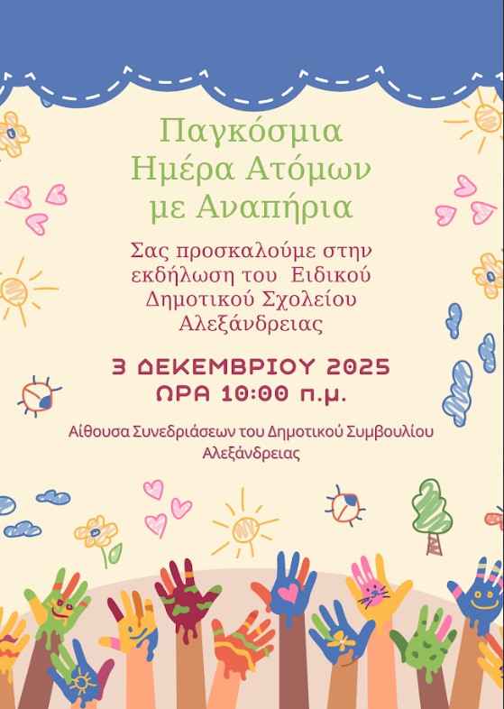 Εκδήλωση του ειδικού δημοτικού σχολείου Αλεξάνδρεια για την παγκόσμια Ημέρα Ατόμων με Αναπηρία.