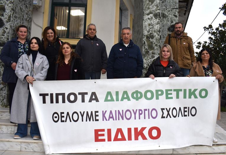 Για μία ακόμη χρονιά, έξω από το Δημαρχείο Αλεξάνδρειας υπήρχε πανό που υπενθύμιζε το πάγιο αίτημα: την ανέγερση ενός νέου κτιρίου για τη στέγαση του Ειδικού Δημοτικού Σχολείου.