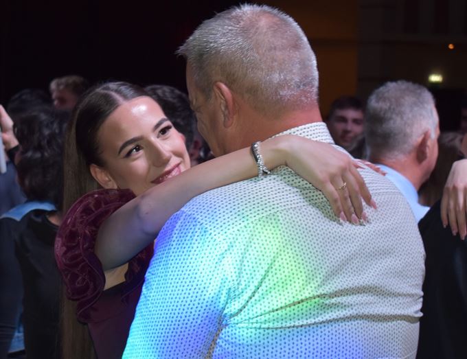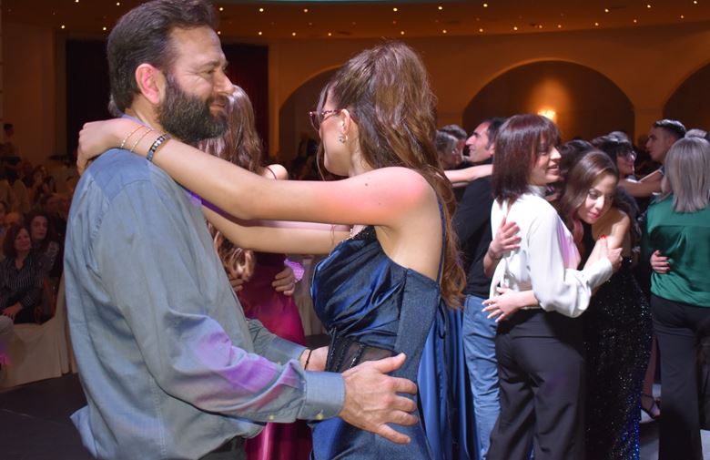 Σημαντική στιγμή της βραδιάς όταν οι μαθητές ανέβασαν στην πίστα τους γονείς τους και χόρεψαν μαζί.