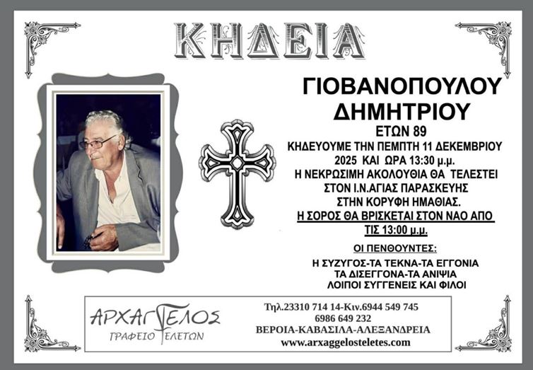Η κηδεία του Γιοβανόπουλου Δημητρίου στην Κορυφή Ημαθίας την Πέμπτη 11 Δεκεμβρίου 2025