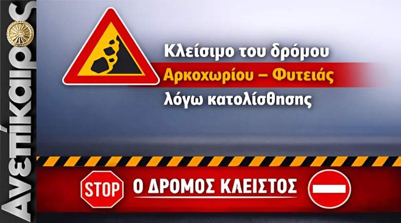 Ο Δήμος Ηρωικής Πόλεως Νάουσας – Αντιδημαρχία Τεχνικών Έργων, Χωροταξίας και Πολιτικής Προστασίας ενημερώνει τους δημότες και τους διερχόμενους οδηγούς ότι, λόγω κατολίσθησης που σημειώθηκε στο 1ο χιλιόμετρο της οδού Αρκοχωρίου – Φυτειάς, αποφασίστηκε το άμεσο και πλήρες κλείσιμο του συγκεκριμένου τμήματος του οδικού δικτύου για λόγους ασφάλειας.