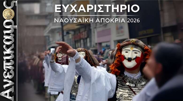 Ο Δήμος Ηρωικής Πόλεως Νάουσας, με την ολοκλήρωση της Ναουσαϊκής Αποκριάς 2026, ενός κορυφαίου πολιτιστικού θεσμού με βαθιές ιστορικές ρίζες και ιδιαίτερη σημασία για την ταυτότητα του τόπου μας, εκφράζει τις θερμές και ειλικρινείς του ευχαριστίες σε όλους όσοι συνέβαλαν καθοριστικά στην επιτυχή διοργάνωση και άρτια διεξαγωγή των εκδηλώσεων.
