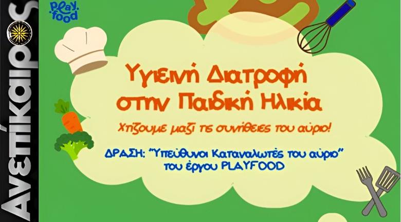Με χαρά σας προσκαλούμε στην έναρξη της νέας σειράς εκδηλώσεων «Υπεύθυνοι Καταναλωτές του Αύριο», η οποία υλοποιείται στο πλαίσιο της ευρωπαϊκής πρωτοβουλίας PLAYFOOD και έχει στόχο την ενίσχυση της διατροφικής παιδείας μαθητών δημοτικής εκπαίδευσης, καθώς και την παροχή πληροφοριών σε γονείς και εκπαιδευτικούς για θέματα διατροφής.