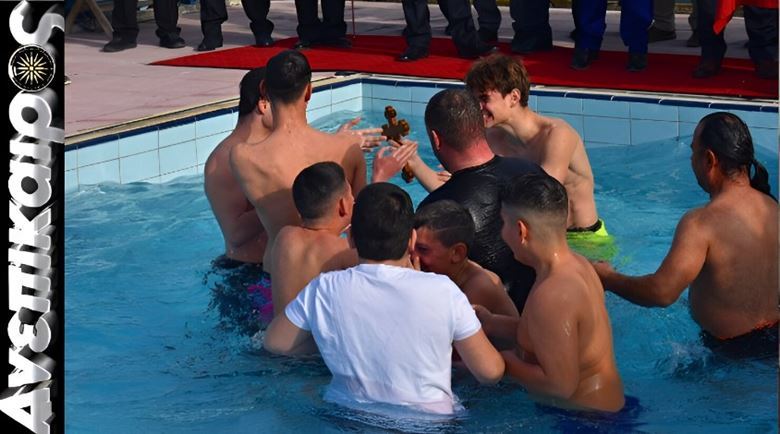 Με ιδιαίτερη κατάνυξη αλλά και με γιορτινή λαμπρότητα τελέστηκε σήμερα, ανήμερα των Φώτων, ο Αγιασμός των Υδάτων στο Δημοτικό Κολυμβητήριο Αλεξάνδρειας, όπου πλήθος κόσμου και επίσημοι έδωσαν το «παρών» για να τιμήσουν τη μεγάλη Δεσποτική εορτή των Θεοφανείων.