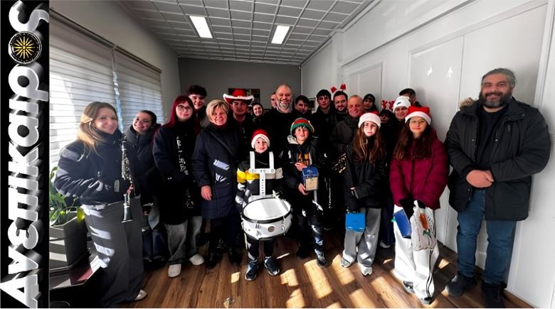 Μελωδίες εορταστικές και μηνύματα αισιοδοξίας πλημμύρισαν το πρωί της Τρίτης 30 Δεκεμβρίου 2025 το Δημαρχείο Νάουσας, όπου τα μέλη της Φιλαρμονικής Εταιρείας Νάουσας έψαλαν τα παραδοσιακά πρωτοχρονιάτικα κάλαντα, μεταφέροντας το πνεύμα των ημερών και τις θερμότερες ευχές τους για το νέο έτος.