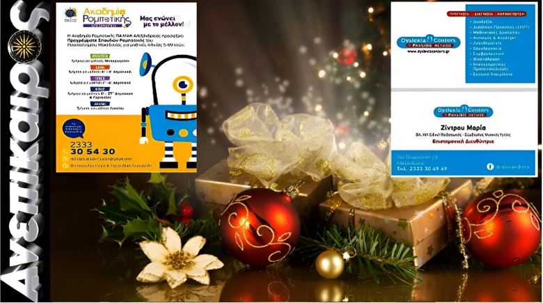 Αγαπητοί μαθητές, γονείς και συνεργάτες, Η Ακαδημία Ρομποτικής και τα Dyslexia Centers σας εύχονται Καλά Χριστούγεννα και Ευτυχισμένο το Νέο Έτος!