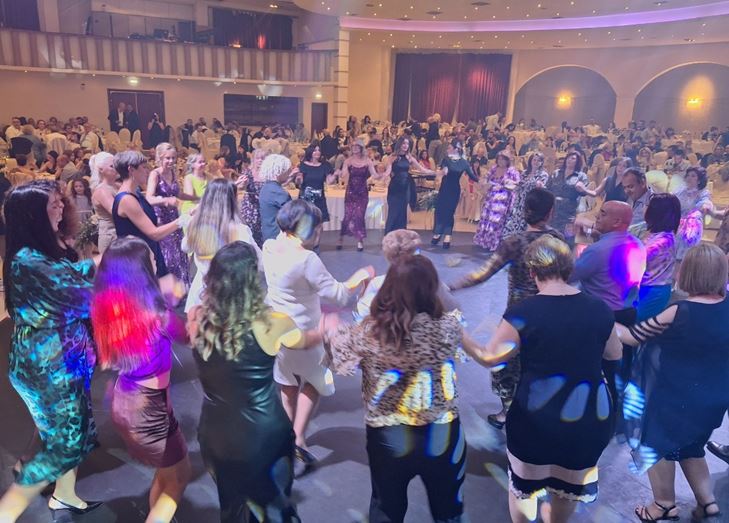 Το ζευγάρι έλαμπε — και μαζί τους έλαμπε και ο χώρος. Η ενέργεια απογειώθηκε χάρη στις άψογες μουσικές επιλογές του DJ, που δεν έπαιξε απλώς μουσική, αλλά δημιούργησε εμπειρία.