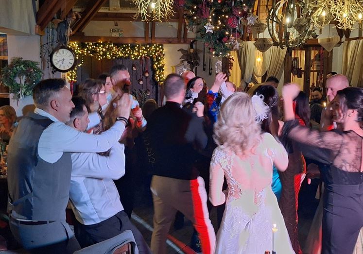 Η πίστα δεν άδειασε ούτε λεπτό, με τους καλεσμένους να χορεύουν, να γελούν και να αγκαλιάζονται κάτω από τα φώτα. Οι μουσικές επιλογές ήταν άψογες, συνδυάζοντας κλασικά γαμήλια κομμάτια με χριστουγεννιάτικες μελωδίες, δημιουργώντας μια ατμόσφαιρα ζεστασιάς και κεφιού.