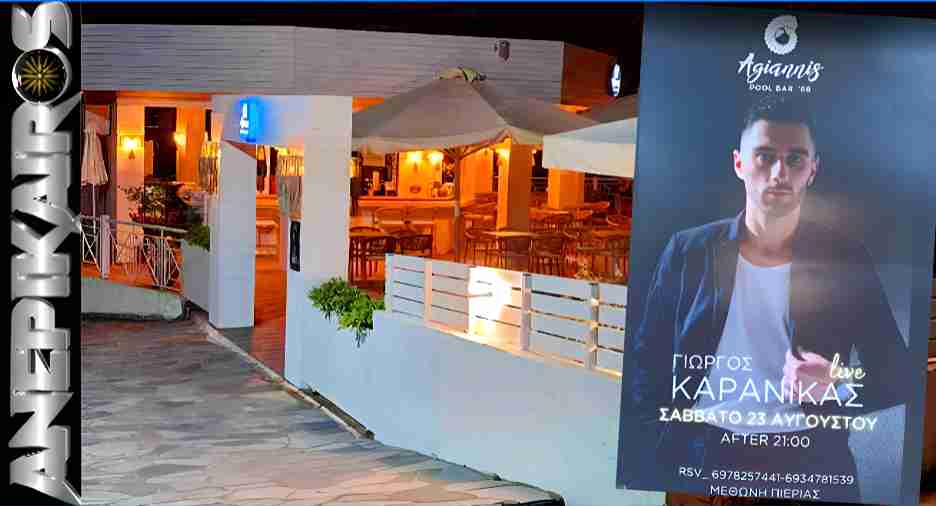 Ετοιμαστείτε για ένα αξέχαστο μουσικό βράδυ αυτό το Σάββατο 23 Αυγούστου! Ο αγαπημένος Γιώργος Καρανίκας ανεβαίνει στη σκηνή του Agiannis Pool Bar 68 στη Μεθώνη Πιερίας για μια μοναδική live εμφάνιση που θα ανεβάσει τη διάθεση στα ύψη.